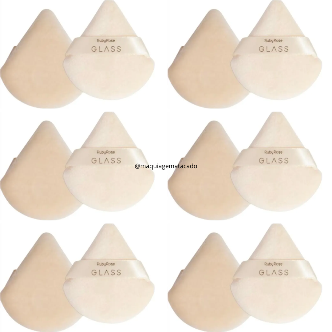 06 Unidades Esponja de Pó Glass Powder Puff Ruby Rose HBS04 Atacado Box Fechado