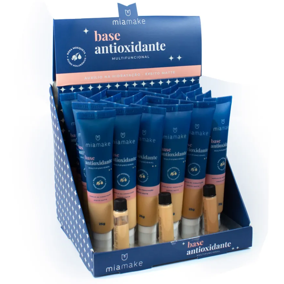 Base Antioxidante Multifuncional Mia Make Cores Médias 326 Atacado Box 24 Unidades