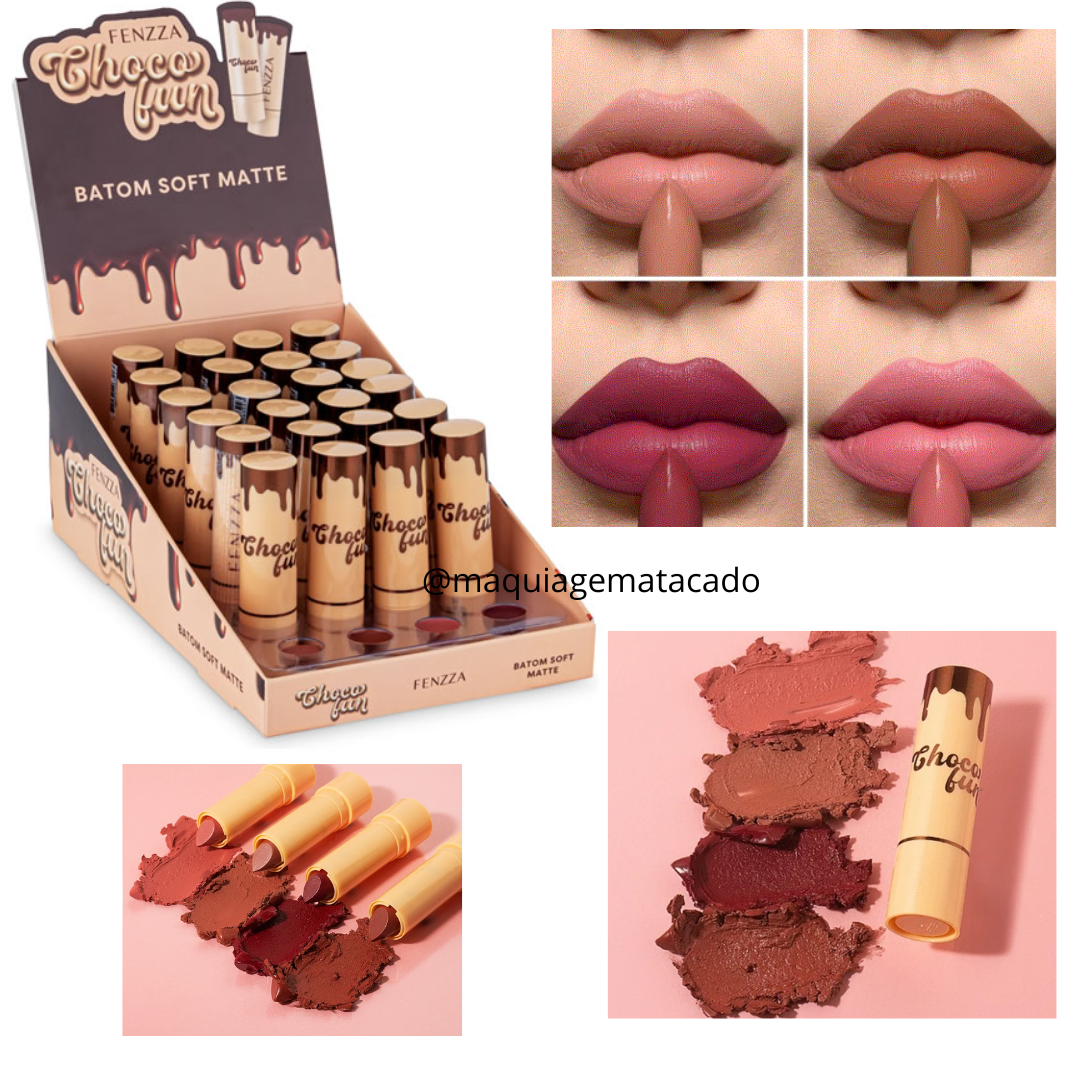 Batom Soft Matte Choco Fun Fenzza FZ20086 Atacado Box 24 Unidades