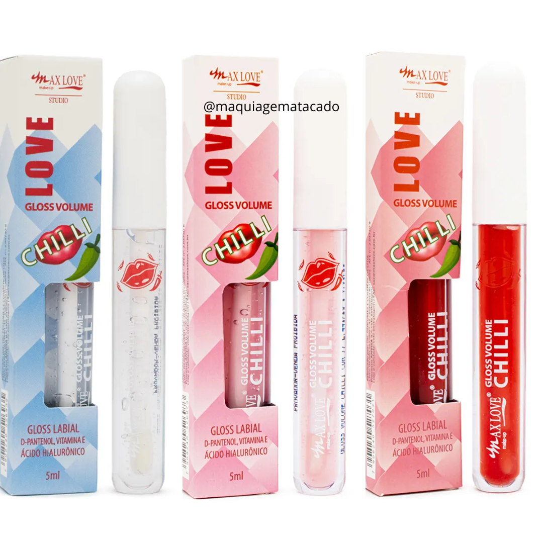 Kit 03 Unidades Gloss Volume Chilli Max Love Cores 75, 77 e 80