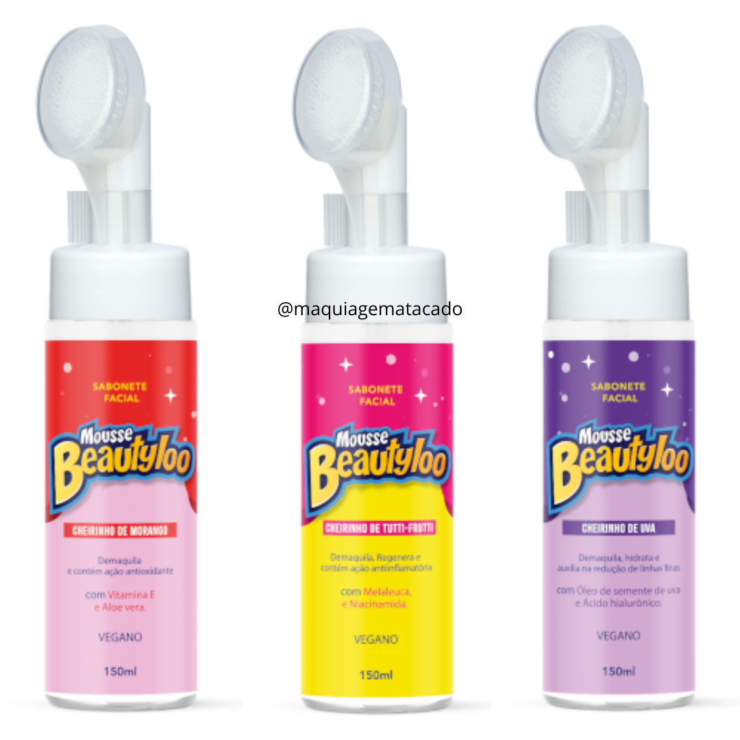 Kit 03 Unidades Mousse Sabonete Facial Beautyloo Morango, Tutti Frutti e Uva
