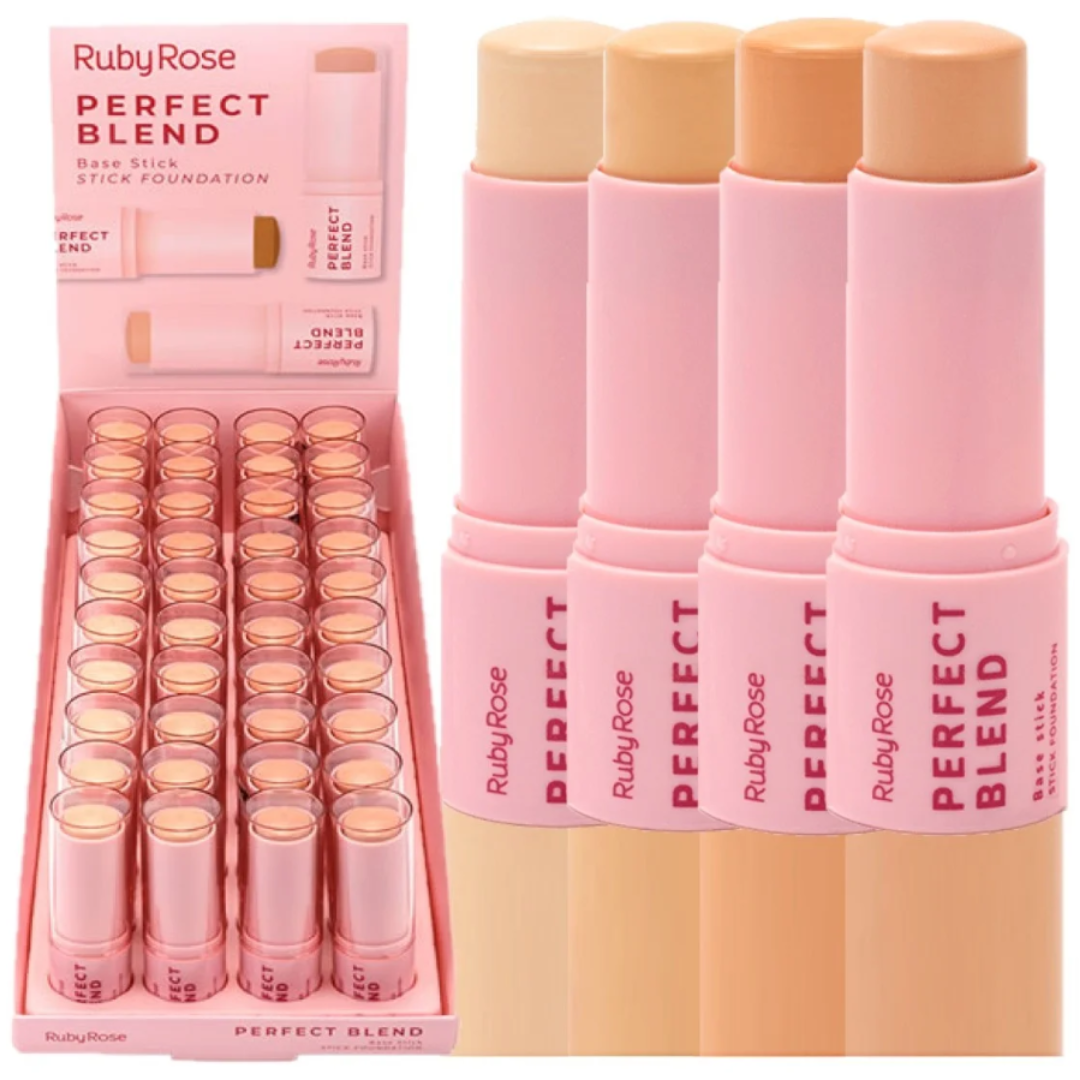A Base em Stick Perfect Blend Ruby Rose é a solução ideal para quem busca praticidade e cobertura em um único produto.