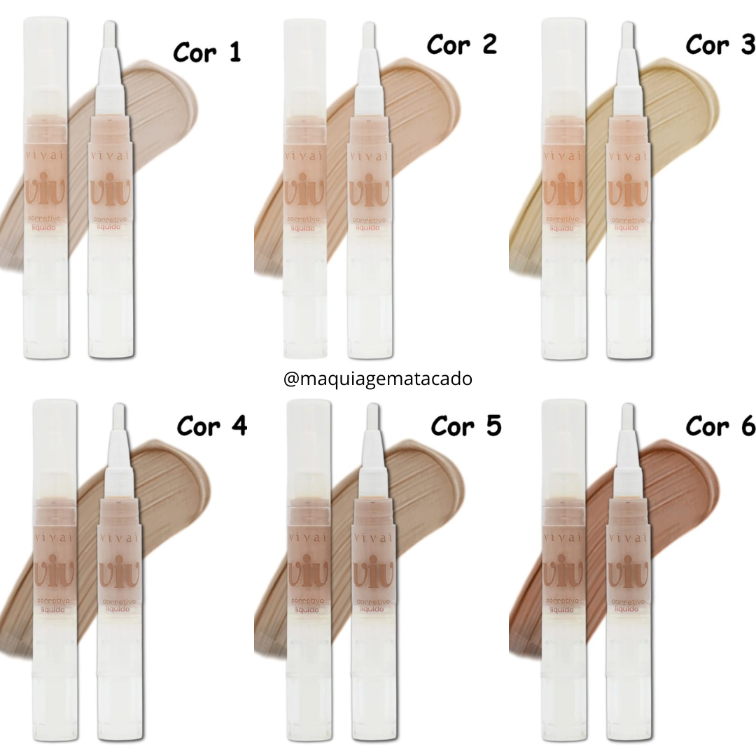 Kit 06 Unidades Corretivo Líquido Caneta Viv Vivai 1120 Cores 01 ao 06