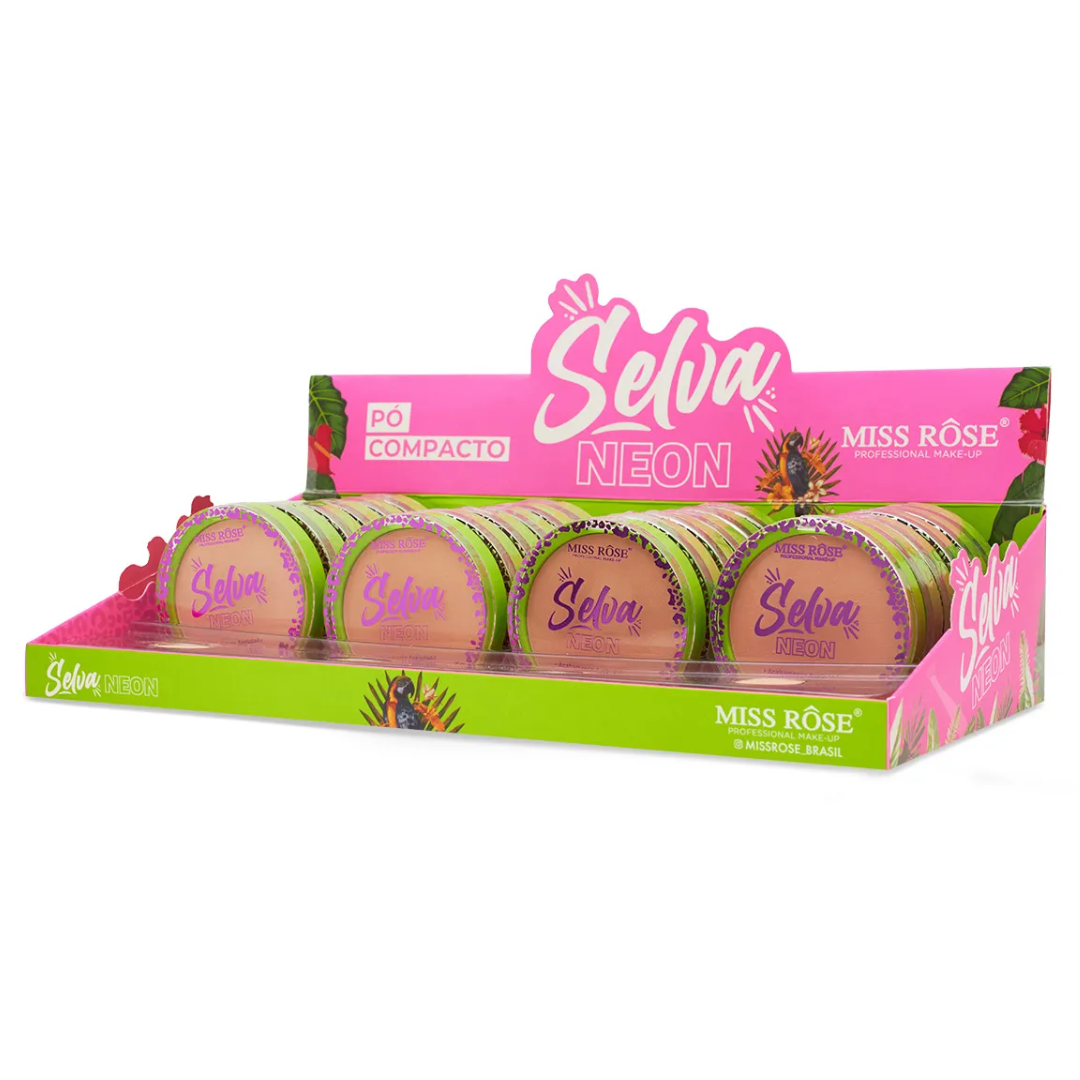 Pó Compacto Selva Neon Miss Rôse Cores 01 ao 04 MR092A Atacado Box 24 Unidades
