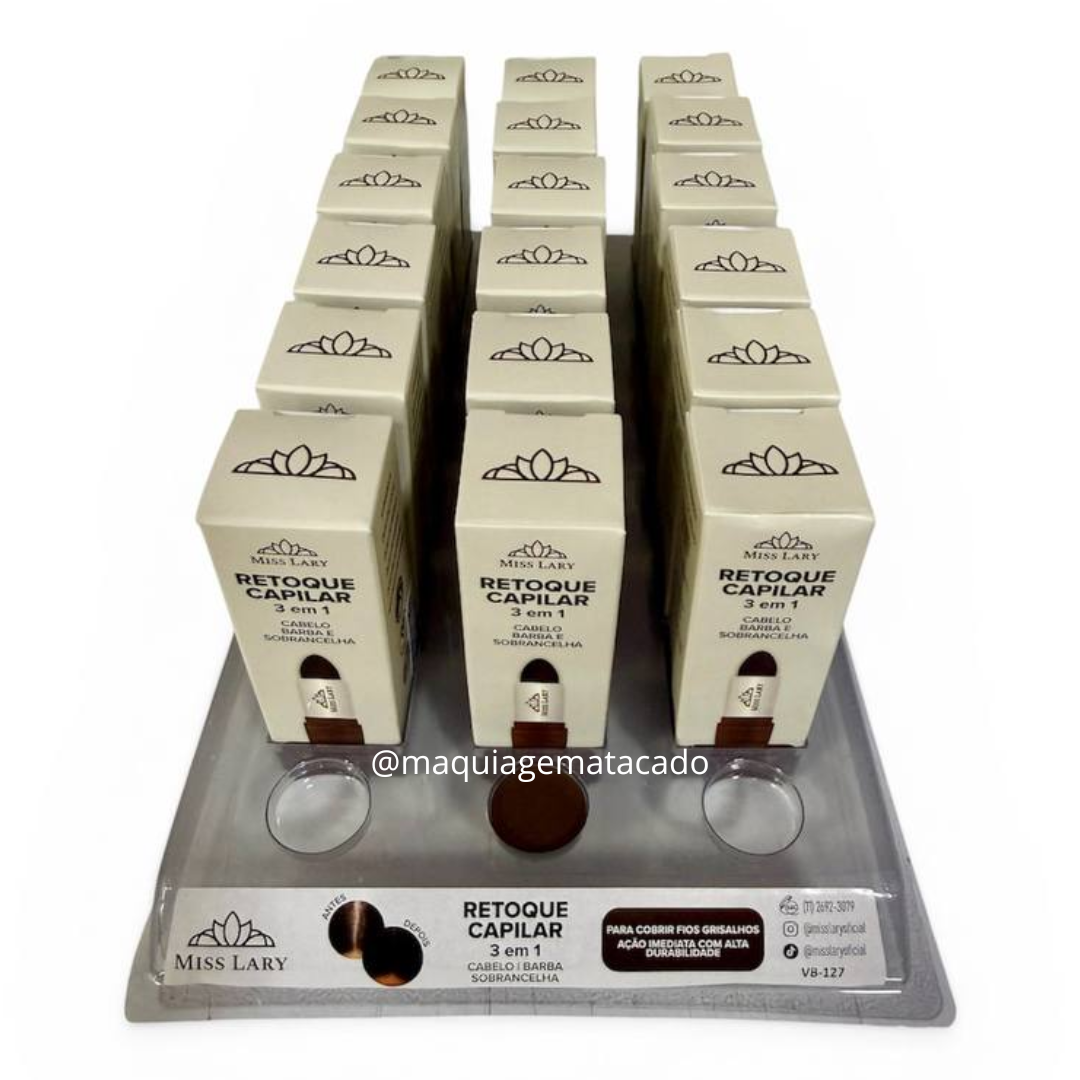 Retoque Capilar 3 em 1 Cabelo, Barba e Sobrancelha Miss Lary VB127 Castanho Médio Atacado Box 18 Unidades