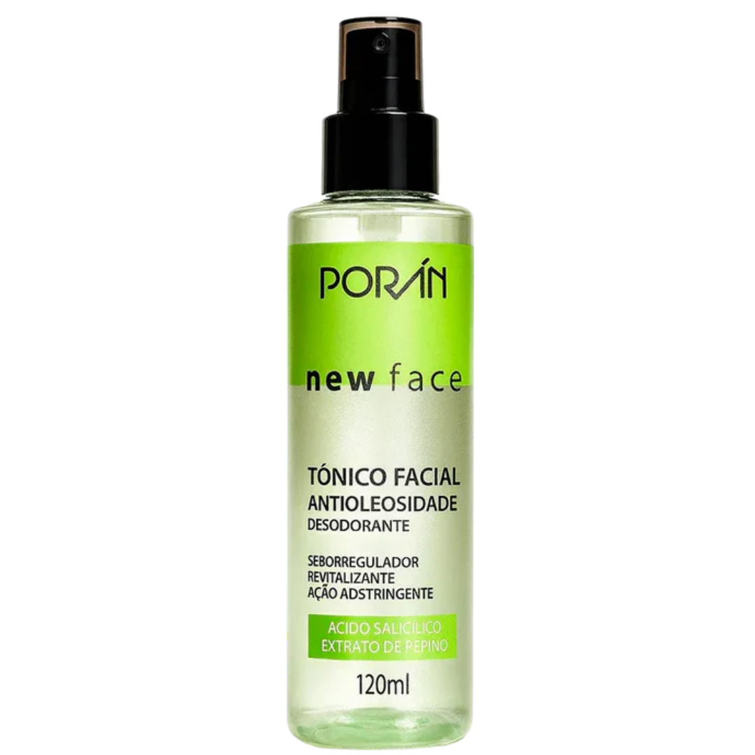 O Tônico Antioleosidade New Face Porán foi feito a base de Extrato de Pepino e Ácido Salicílico. Sua formulação tonifica a pele enquanto hidrata e controla a oleosidade.